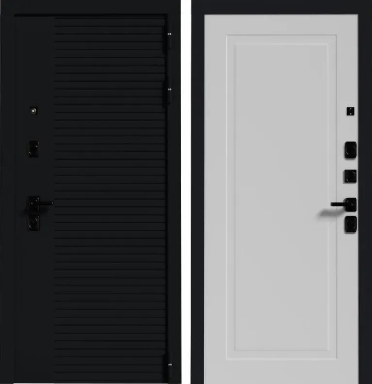 Ручка черная на квадратной планке раздельная стяжная; цилиндр ключ/вертушка, независимая ночная задвижка, глазок над замковой группой.